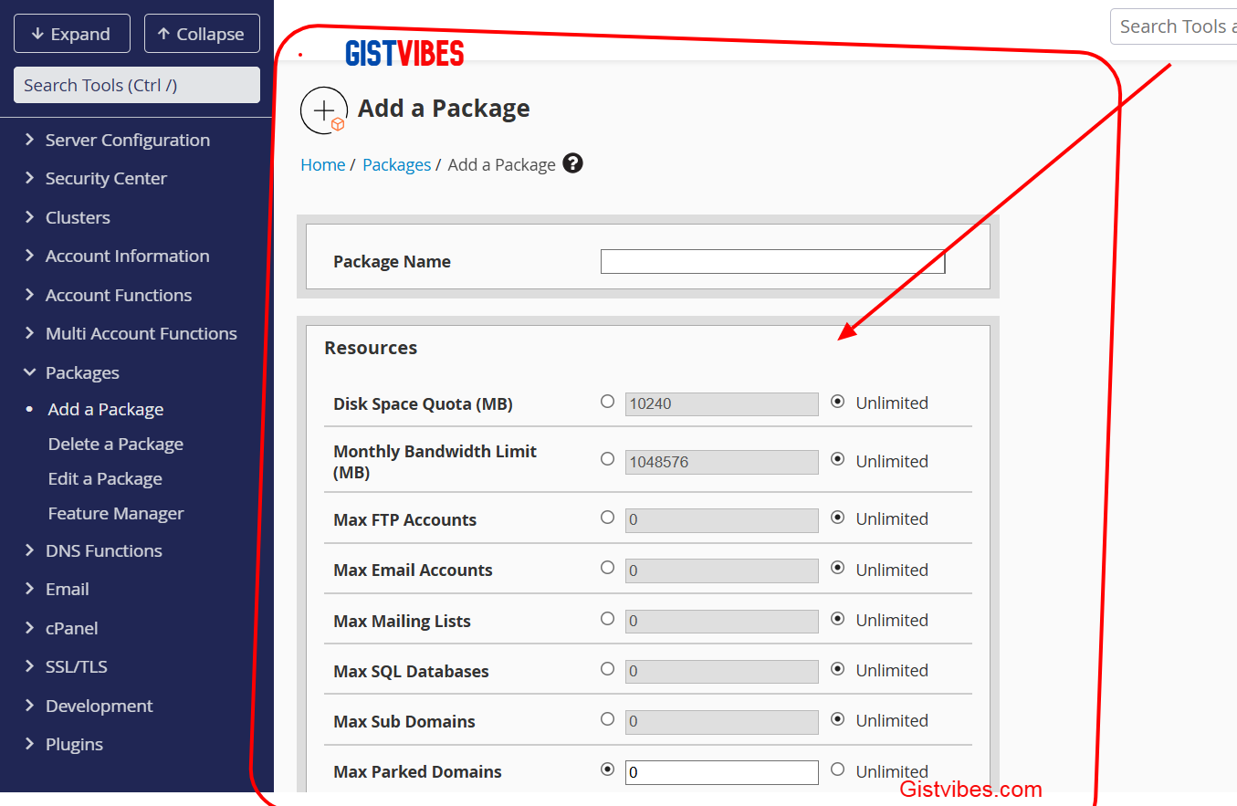 WHM (Web Host Manager) is where you create hosting plans for your customers.